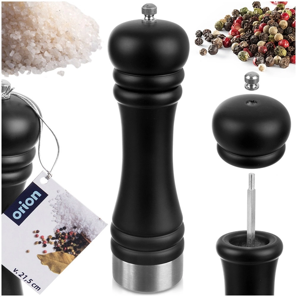 Ta praktični mlinček višine 21,5 cm je izdelan iz kakovostnega kavčukovega lesa z obstojnim poliuretanskim lakom v elegantni črni barvi. V notranjosti se nahaja keramični mletni mehanizem, ki kos tudi tršim zrnom in zagotavlja dolgo življenjsko dobo ter natančno mletje.