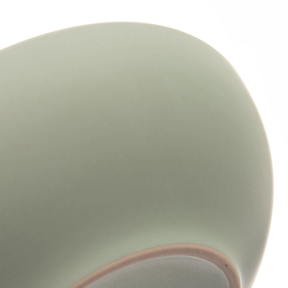 Trdna keramika v olivno zelenem odtenku z gladkim mat zaključkom deluje elegantno in se zlahka čisti.