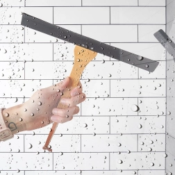 Široka prožna gumijasta letvica se tesno prilega steklu in ploščicam ter hitro odvaja vodo brez puščanja lis.