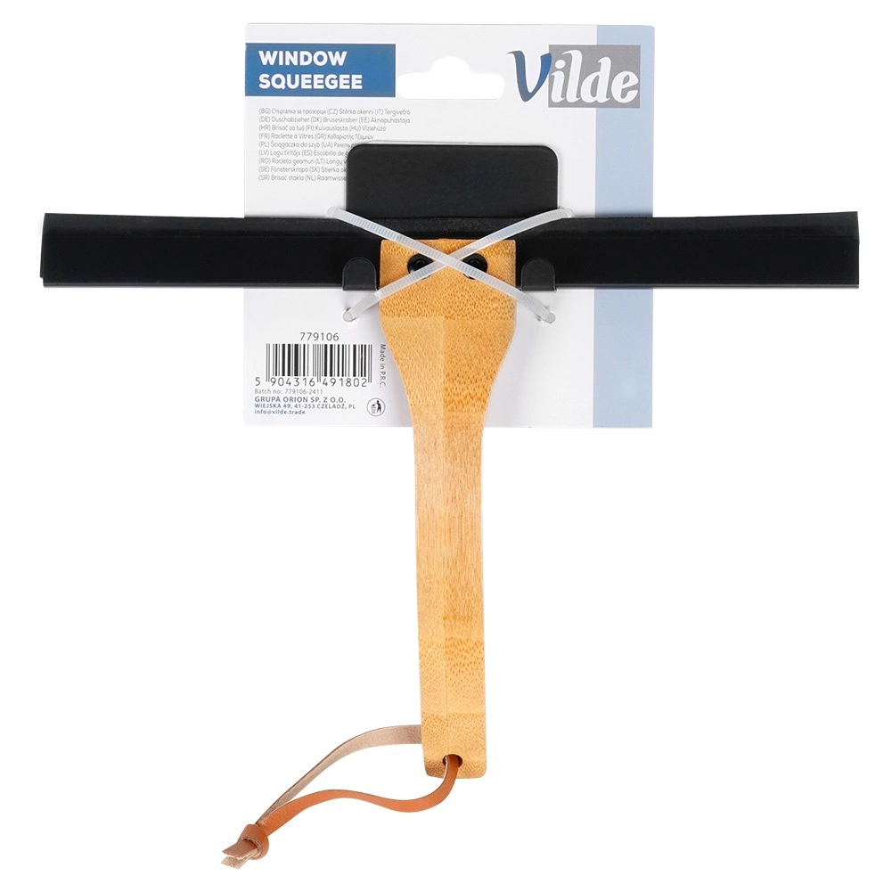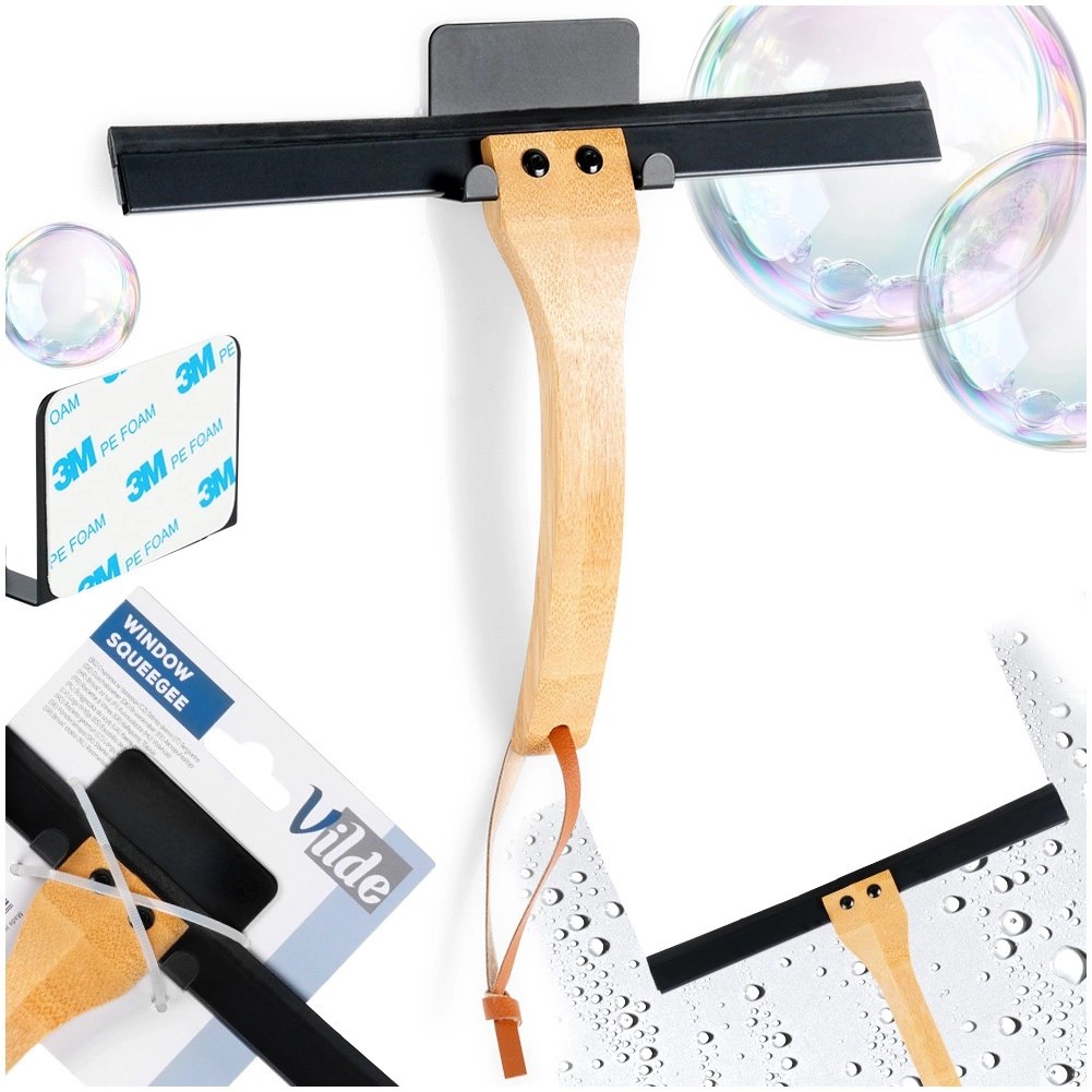 Ohranjajte steklo in ploščice popolnoma čiste z brisalko Vilde s kakovostno gumijasto letvico, ki zanesljivo sledi površini in jo pušča brez lis in kapljic. Ergonomski bambusen ročaj varno sede v roki in olajša vsakodnevno čiščenje prhe, ogledal in oken.