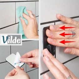 Izdelano iz trpežnih materialov za dolgo življenjsko dobo in enostavno vzdrževanje. Držalo odlično drži na ploščicah, lakiranih stenah in drugih ravnih, gladkih površinah. Originalen izdelek znamke VILDE, izdelan v skladu z evropskimi standardi.