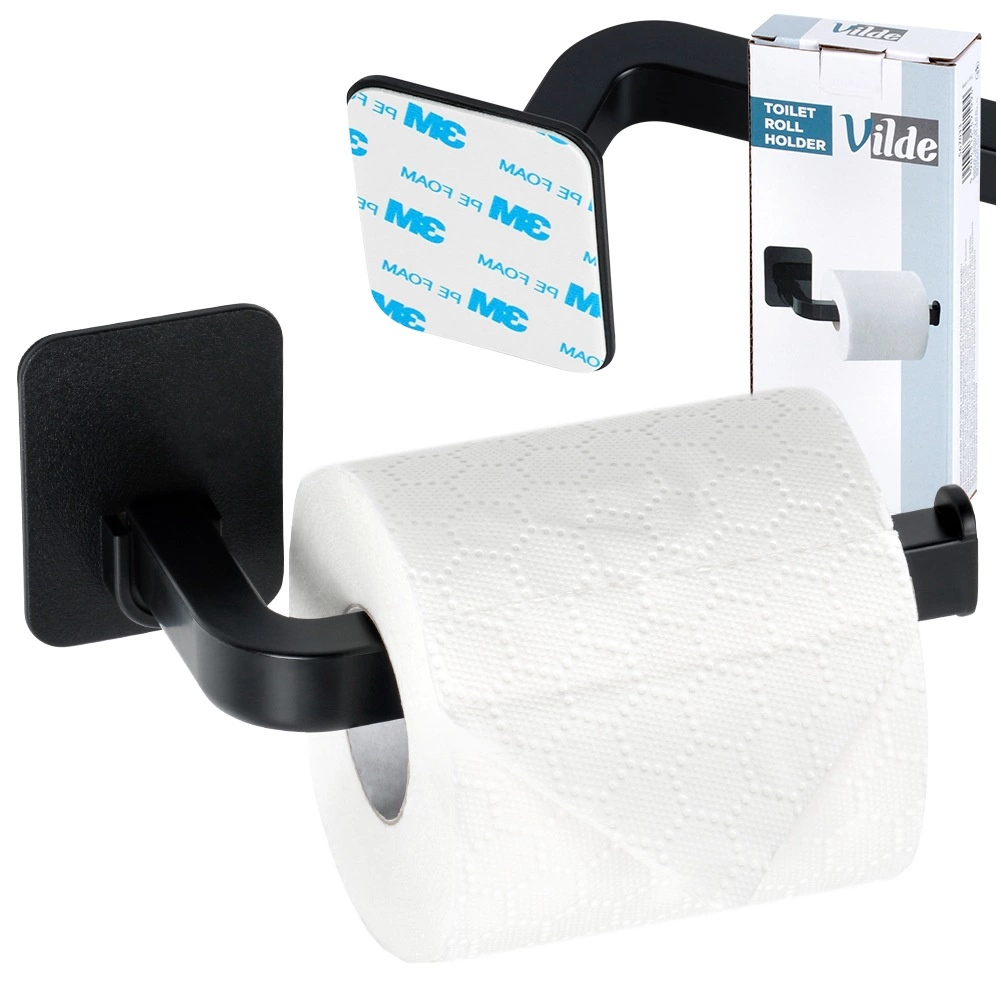 Slogovno držalo za toaletni papir v mat črni izvedbi je idealna izbira za moderne kopalnice. Zahvaljujoč močnemu lepilnemu traku 3M ga namestite v trenutku brez vrtanja in poškodovanja oblog. Minimalistična L-oblikovana zasnova omogoča hitro menjavo role in udobno odvijanje papirja.