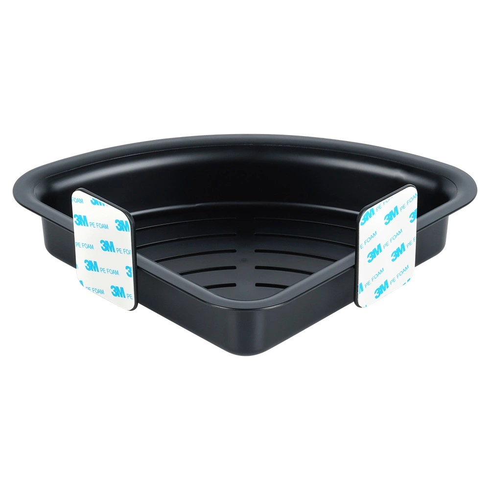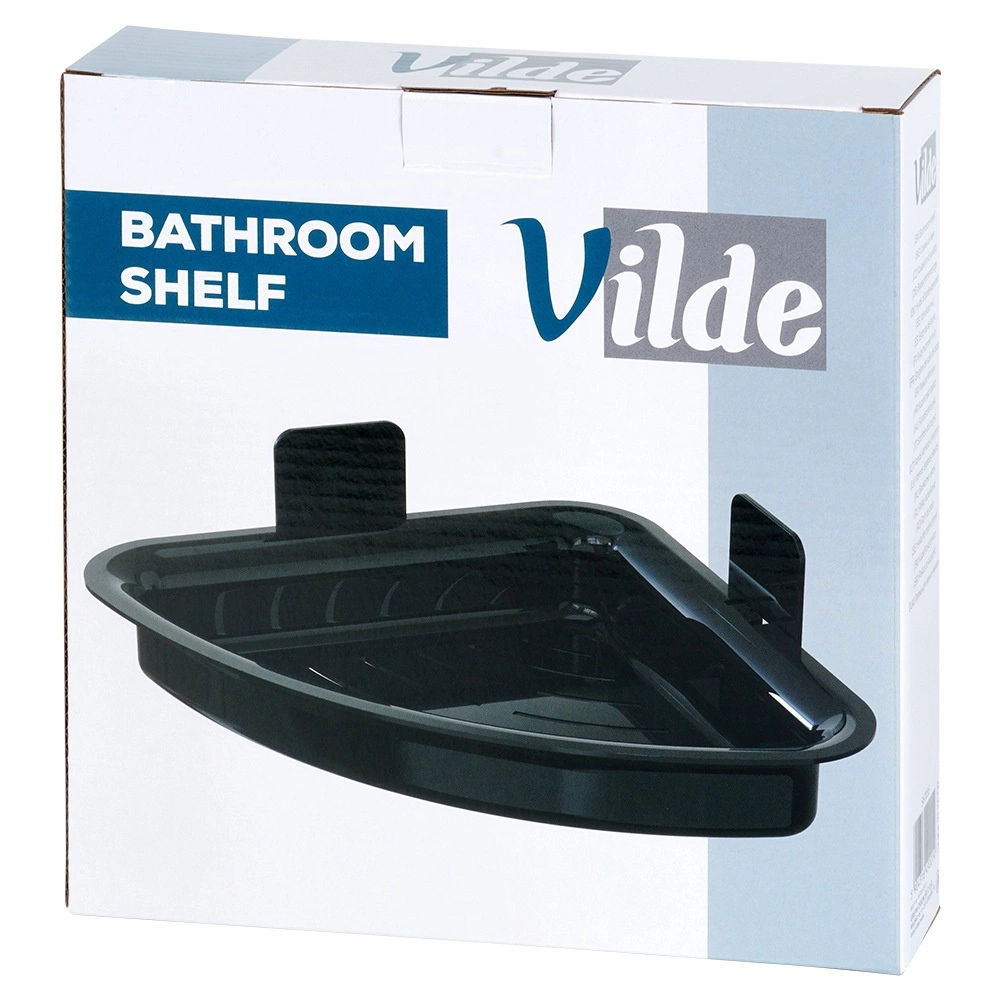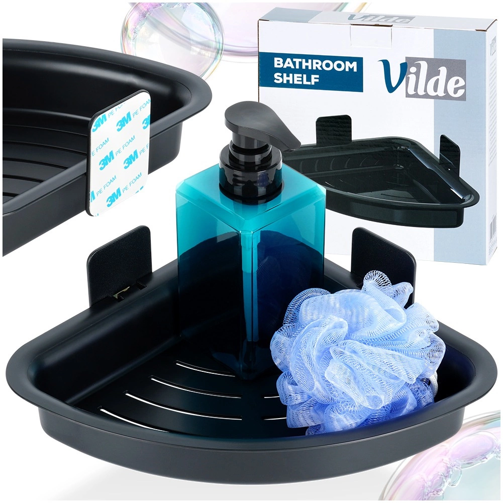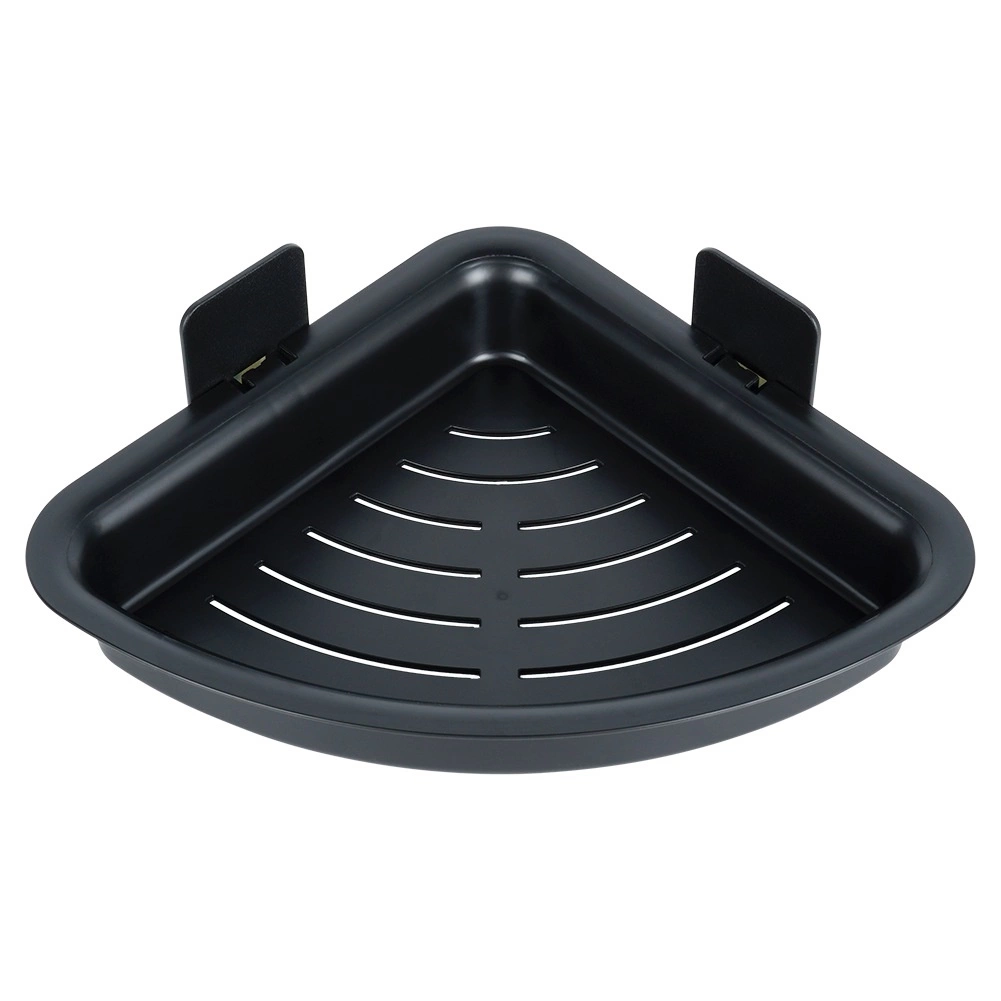 Elegantna kotna polica prihrani prostor in ohranja red v prhi. Mat črna izvedba se poda sodobnim interierjem, odporen material se enostavno čisti in ob pravilni uporabi zdrži leta. Dimenzije z nosilci: 28 × 22 × 8 cm, višina same police: 4,5 cm.