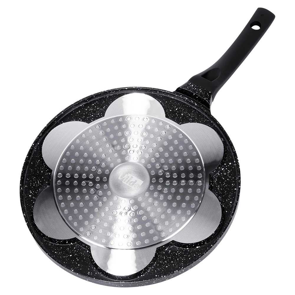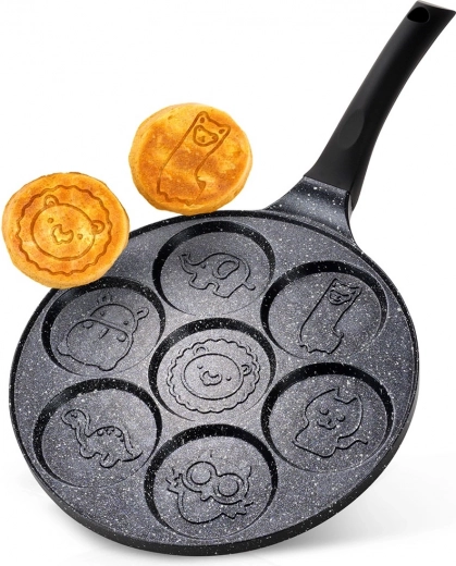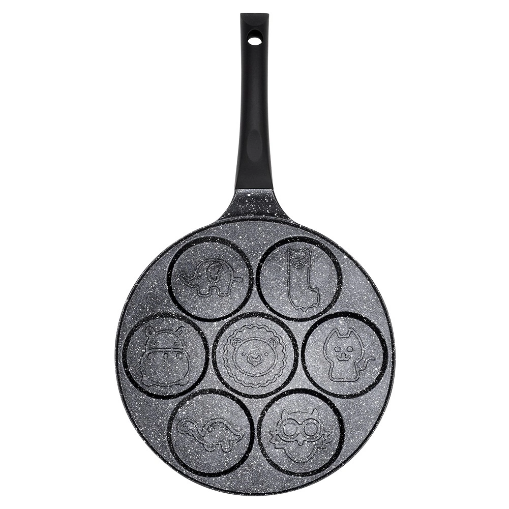 Uživajte v hitri in igrivi pripravi zajtrka. Granitna ponev BLACK LINE združuje lahko aluminijasto telo z odporno neprijemljivo obdelavo, zato jajca na oko, palačinke in mini palačinke zlahka odstranite iz modelčkov, ponev pa se preprosto čisti. Živalski reliefi na dnu modelčkov razveselijo otroke in odrasle ter vsako jutro spremenijo v majhen ritual.