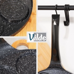 Vzdržljiv granitni sloj preprečuje prijemanje, olajša obračanje in omogoča kuhanje z minimalno količino olja.