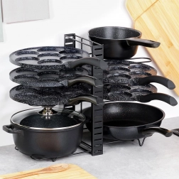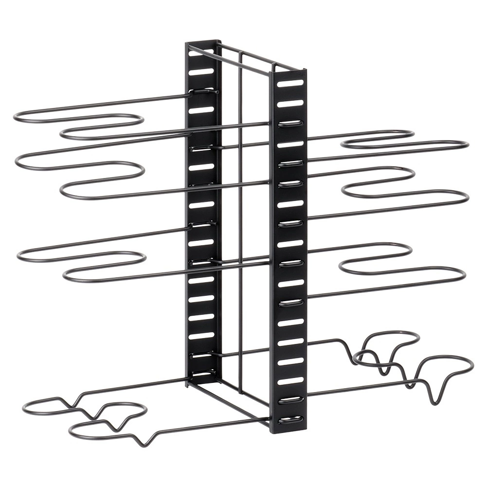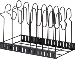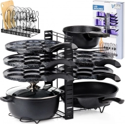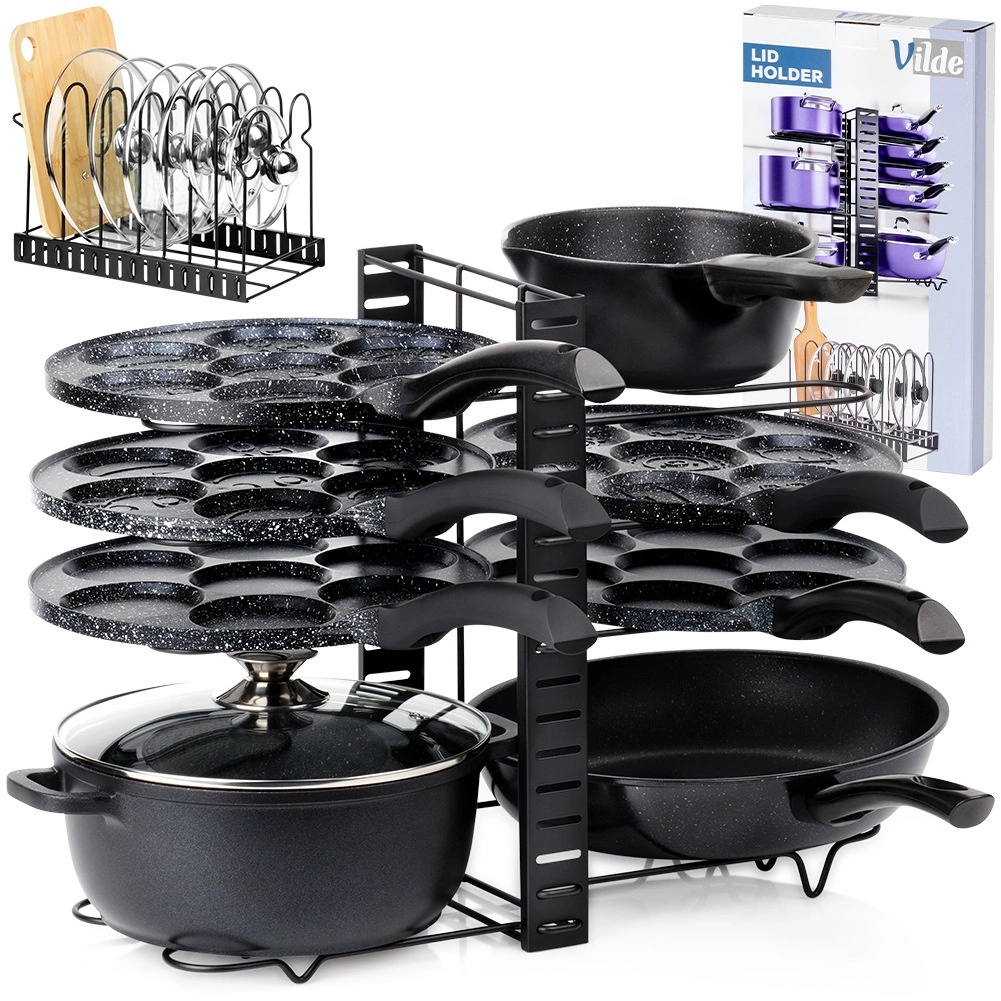 Pametna rešitev za vsako kuhinjo: ta kovinski organizator 2-v-1 služi kot samostojno držalo za pokrovke, krožnike in deske ali kot stojalo za ponve in lonce. Nastavljiva višina polic omogoča natančno nastavitev razdalj glede na velikost posode, zato bo vse ostalo pregledno in pri roki.