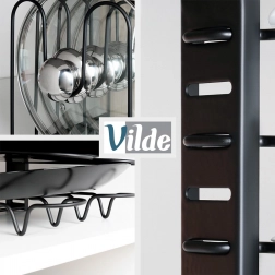 Police preprosto premikate tako, da v stojalo udobno namestite majhne in velike ponve, globoke lonce ter visoke pokrovke.