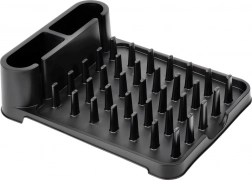Popolnoma plastična izdelava v mat črni je trpežna, enostavna za čiščenje in se odlično poda tako modernim kot klasičnim kuhinjam. Dno je zasnovano tako, da zajema odcejeno vodo in omogoča njeno odvajanje, zato pult ostane suh in čist.