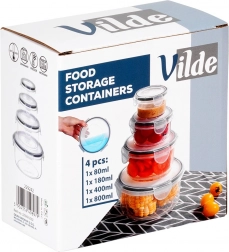 Štiri okrogle posode (800/400/180/80 ml) se zložijo ena v drugo in prihranijo prostor v predalih in shrambi.