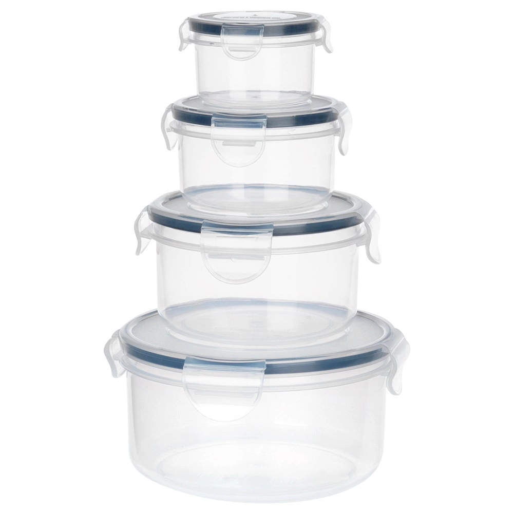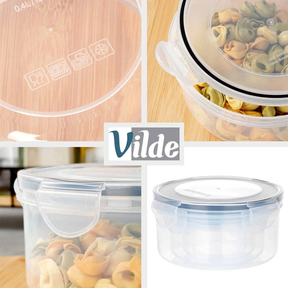 S tem univerzalnim kompletom okroglih posod boste zlahka shranili malice, ostanke jedi in razsute sestavine. Prozorna izvedba omogoča hitro preverjanje vsebine brez odpiranja, različne velikosti pa poskrbijo za red v kuhinji in hladilniku. Posode se lahko zložijo ena v drugo za prihranek prostora.
