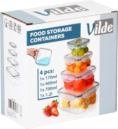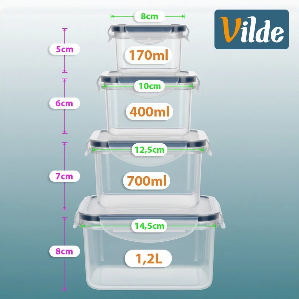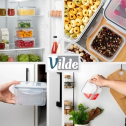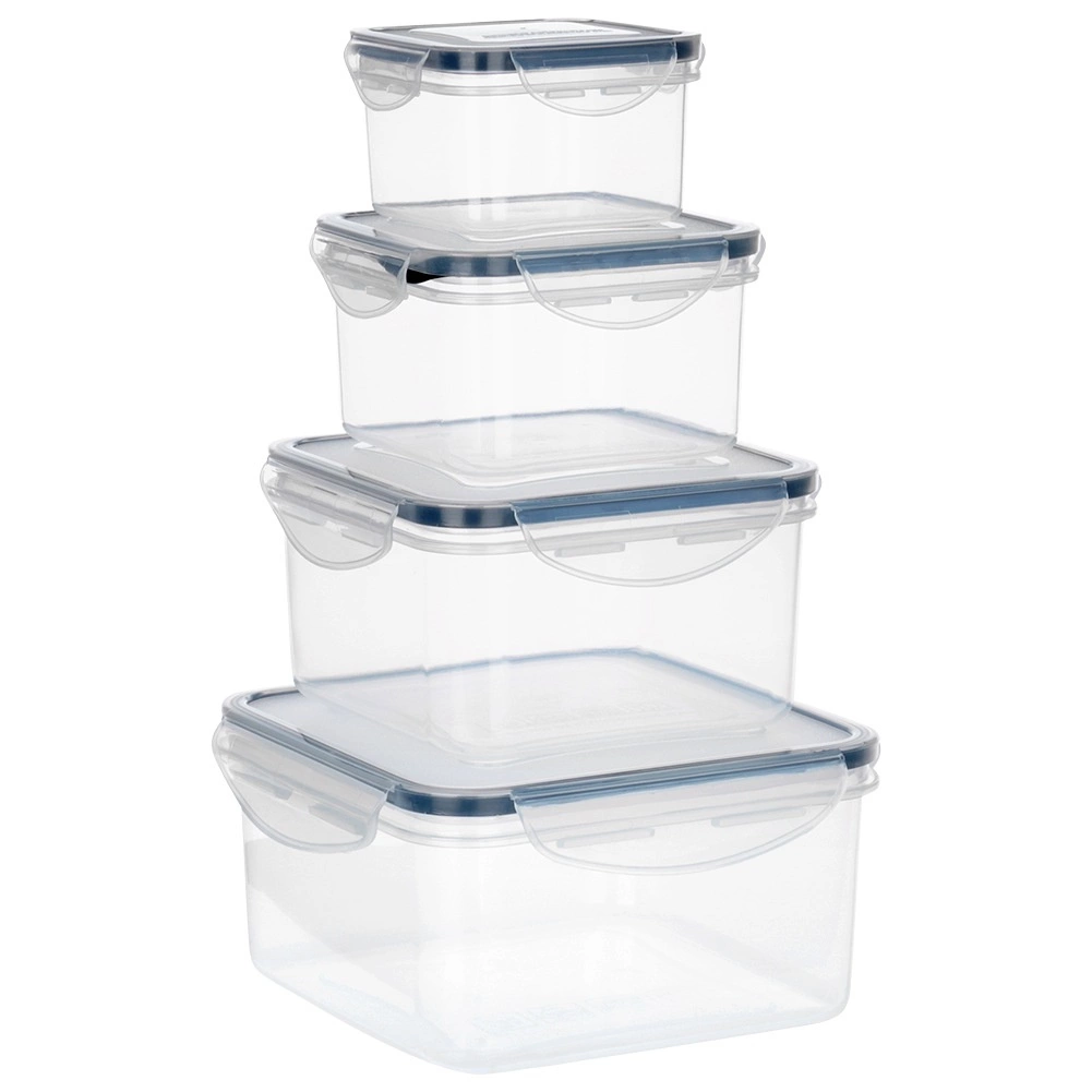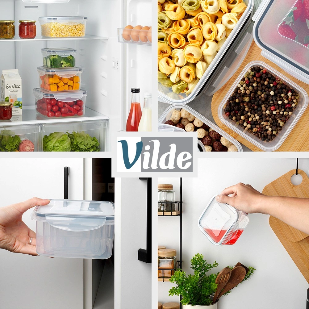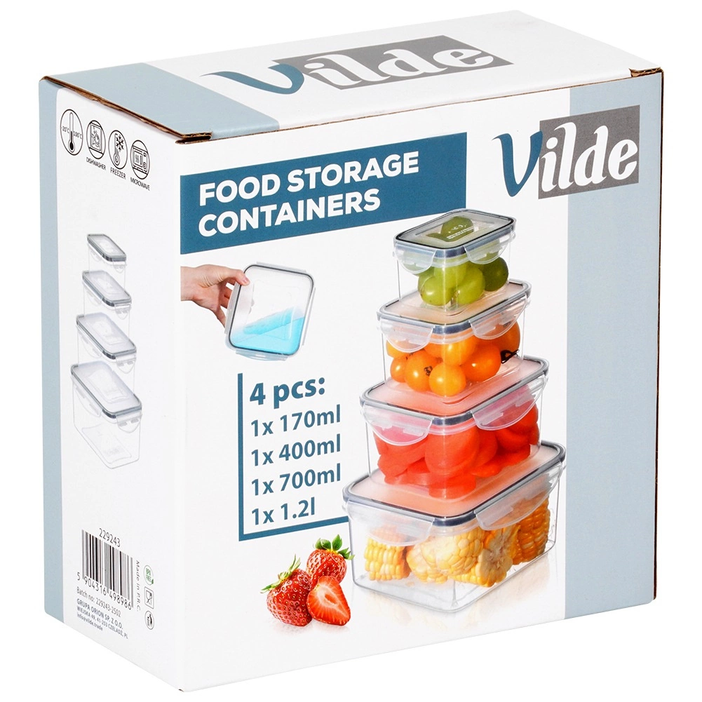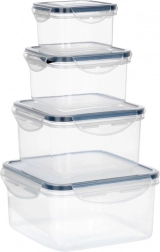 Ta vsestranski set štirih kvadratnih posod pomaga ohranjati red v kuhinji in podaljšati svežino živil. Prosojne stene omogočajo hiter pregled vsebine brez odpiranja, pokrovi s štirimi zaponkami in silikonskim tesnilom pa zagotavljajo zanesljivo tesnjenje. Posode se lahko zložijo ena v drugo za prihranek prostora.