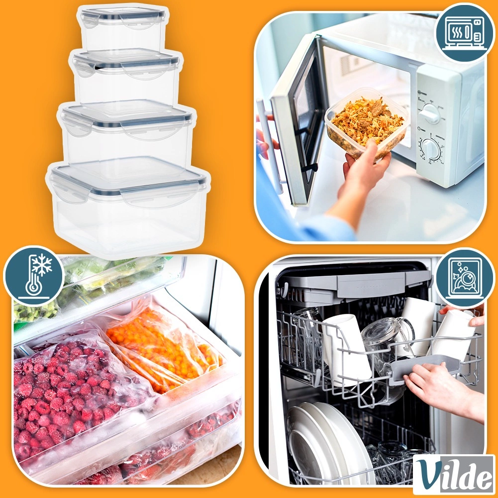 Idealne za suha živila, narezke, solate, sadje, pripravljena kosila in prigrizke. Zaradi odpornosti na temperature od -20 °C do 100 °C so primerne za zamrzovanje in pogrevanje (brez pokrova), po uporabi pa jih preprosto operete v pomivalnem stroju. Material brez BPA je varen za stik z živili.