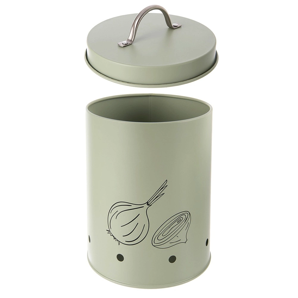 Ta kovinska škatla iz serije Greenish je odličen pomočnik za pregledno in estetsko shranjevanje živil v kuhinji. Dimenzije 14 × 20,5 cm in prostornina 2,4 l ponujajo dovolj prostora za čebulo, česen ter drugo zelenjavo ali sadje. Pastelno zelen zaključek bo postal dekorativen element vsake kuhinje.