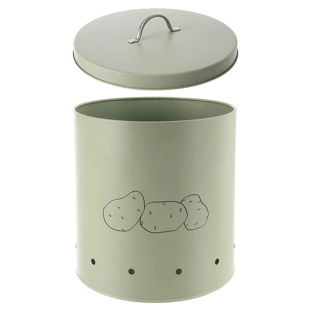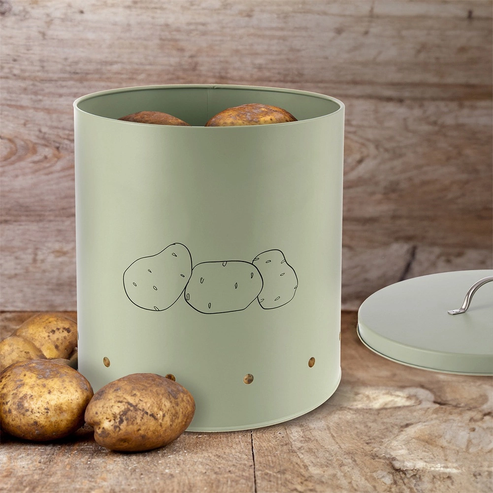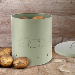 Praktičen pokrov učinkovito omejuje dostop svetlobe in tako preprečuje kaljenje krompirja. Minimalistična grafika krompirja na sprednji strani nakaže, kaj shranjujete, hkrati pa doda vaši kuhinji dekorativen element.