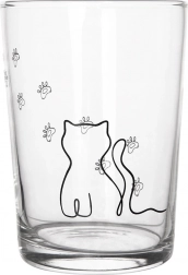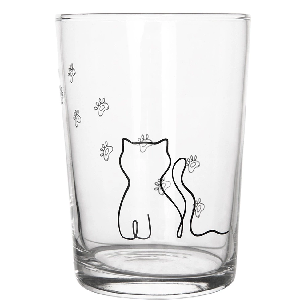 Ta velik kozarec z motivom mačke in tačk bo razveselil otroke in odrasle. Zaradi univerzalne prostornine 500 ml je odličen za hladne in tople napitke, od vode in domače limonade do kakava ali čaja. Trdna izdelava iz debelega stekla zagotavlja dolgo življenjsko dobo in udobno vsakodnevno uporabo.