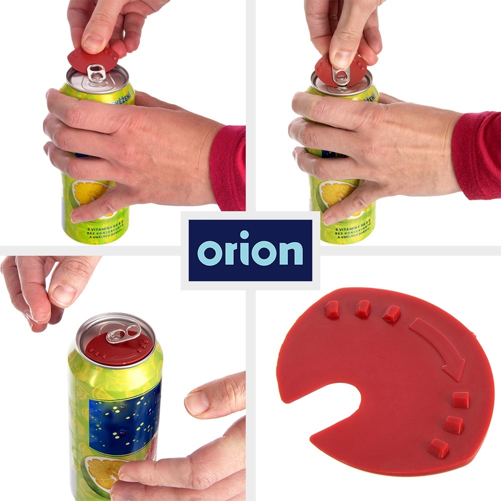 Set združuje odpirač in pokrovček v enem pametnem dodatku. Plastični del se vstavi pod jeziček, izrez pa nasloni na sredinsko zakovico pokrovčka, kar omogoča varno in udobno dviganje jezička brez odvečnega napora. Po odprtju le zasukate pokrovček in prekrijete odprtino – zatič v izrezu se zasidra na sredinsko zakovico, rob pa sede v obroč pločevinke.