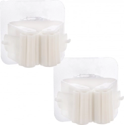 Držala so iz odporne plastike v beli barvi s prozorno montažno osnovo. Vsak kos meri približno 5,5 × 5 × 5,5 cm in je primeren za ročaje do 2,5 cm. Nosilnost do 5 kg zagotavlja, da prenese tudi težje dodatke. V setu sta 2 samostojni držali, ki ju lahko namestite natanko tja, kjer ju potrebujete.