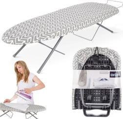 Kompaktna namizna likalna deska za majhna stanovanja, študentske domove in potovanja ponuja stabilno kovinsko konstrukcijo, nedrseče nogice ter udobno bombažno prevleko s filcno podlogo. Ima izvlečni nosilec za likalnik, enostavno se razpre in po zlaganju zavzame minimalno prostora.