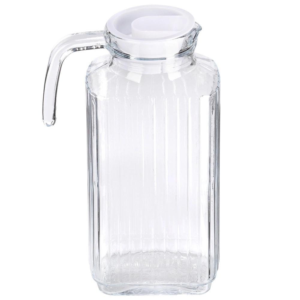 Praktičen in stilski vrč iz kakovostnega, debelega prozornega stekla z rebrasto strukturo odlično izgleda na mizi in hkrati nudi zanesljiv oprijem. Zahvaljujoč ozki pravokotni obliki se udobno prilega v vrata hladilnika in ohranja vaše pijače vedno sveže in pri roki.