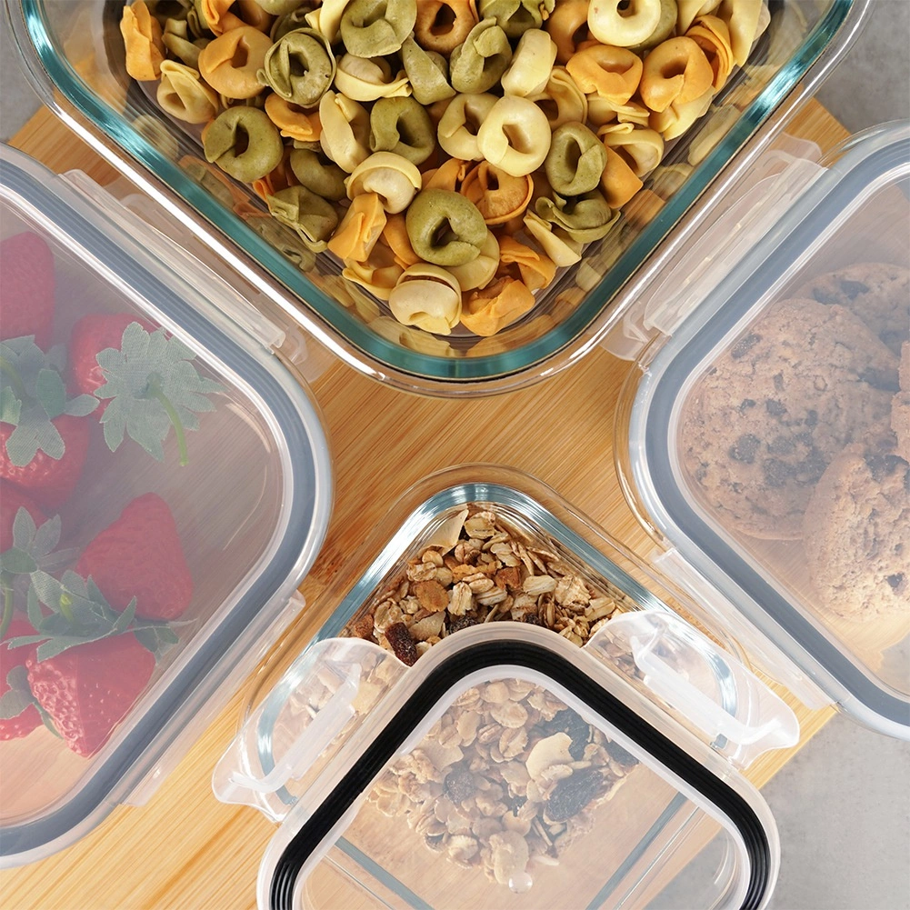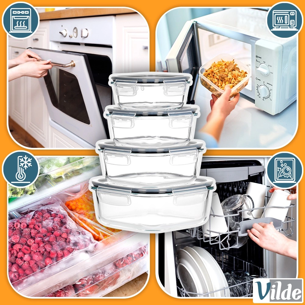 Ohranite kuhinjo pregledno in živila dlje sveža. Steklene posode iz odpornega borosilikatnega stekla imajo prozorne stene za hitro kontrolo vsebine ter pokrove z močnimi štirimi sponkami in črnim silikonskim tesnilom, ki preprečuje iztekanje in prehajanje vonjav. Idealno za meal prep, shranjevanje ostankov in prenašanje prigrizkov.