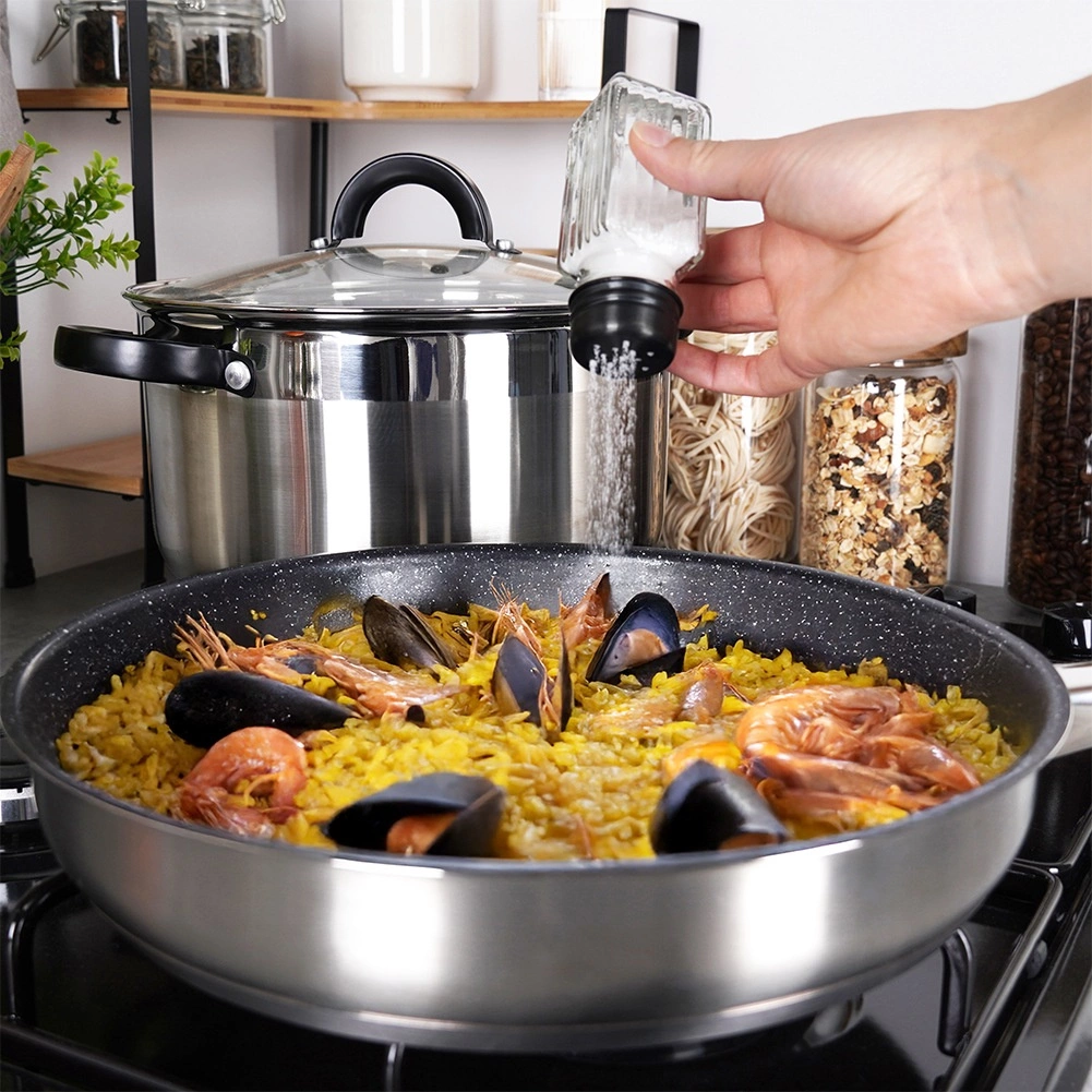 Navojni pokrovčki s perforacijo omogočajo enakomerno doziranje soli in popra, ohranjajo aromo in zmanjšajo razsipanje začimb na minimum.