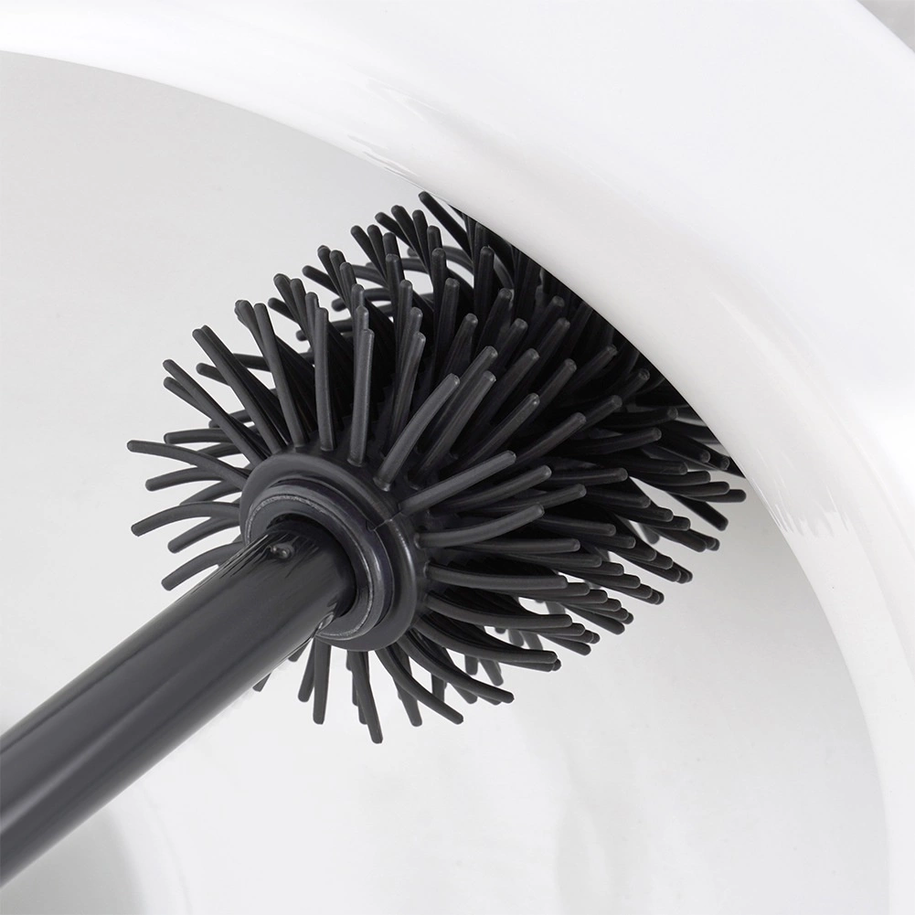 Ta nadomestna silikonska ščetka za stranišče združuje moderno higieno in dolgo življenjsko dobo. Silikonske ščetine v črni barvi odbijajo vodo in nečistoče, hitro se sušijo in občutno poenostavijo vzdrževanje. Glava je navojna in enostavno zamenljiva, kar spodbuja redno in higiensko obnovo.