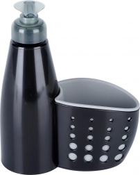Elegantni dozirnik za pomivanje združuje posodico za tekoči detergent s praktično košarico za gobico ali krtačko. Zahvaljujoč odtočnim odprtinam pripomočki ostanejo suhi in vedno pri roki. Minimalističen črn dizajn se odlično ujema z modernimi, klasičnimi in industrijskimi interierji.