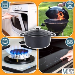 Primeren za plin, elektriko, steklokeramiko, halogen in indukcijo. Brez skrbi ga lahko uporabite tudi v pečici, na žaru ali nad odprtim ognjem.