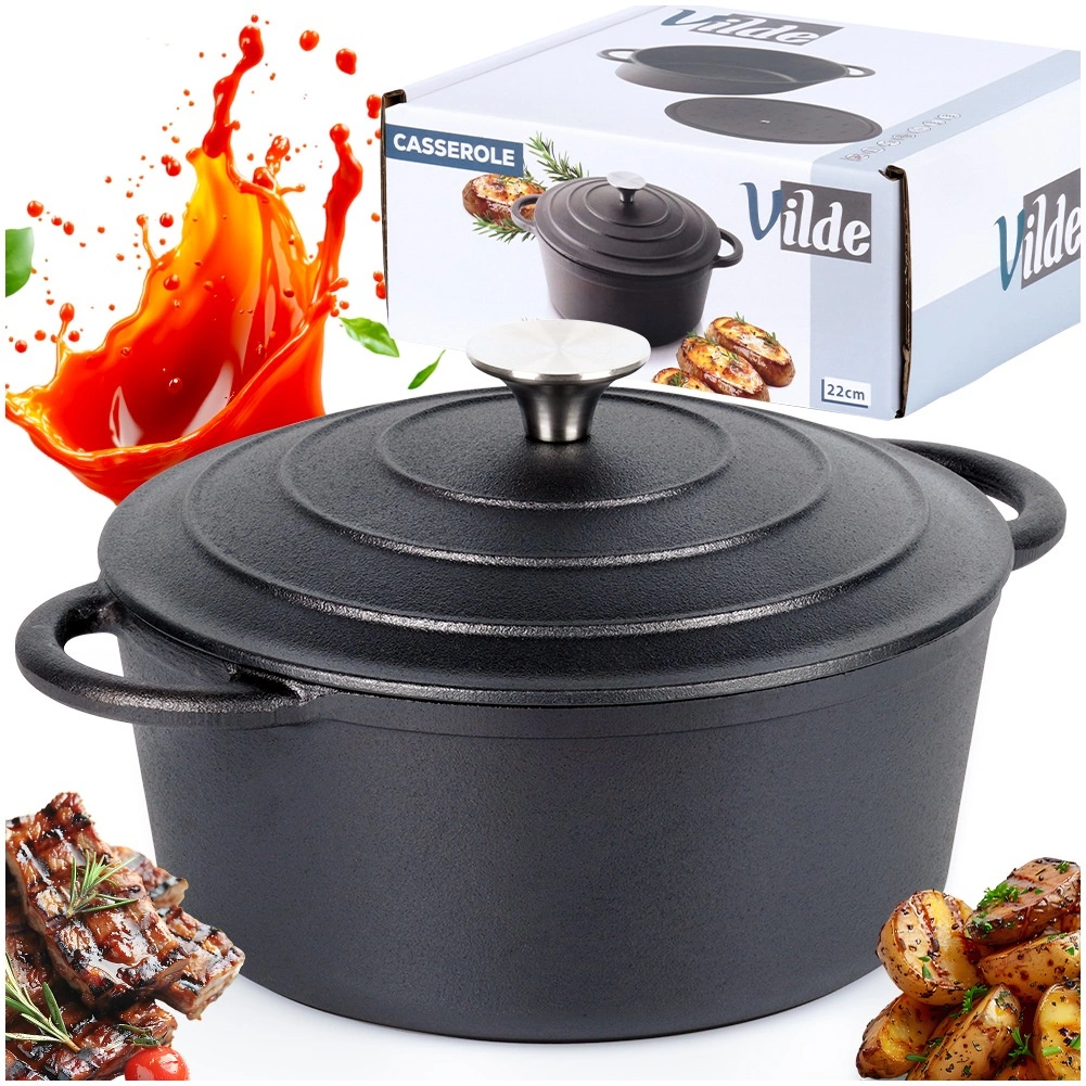 Litoželezni lonec CAST LINE s premerom 22 cm izstopa z masivno izvedbo in odličnimi toplotnimi lastnostmi. Primeren je za vsakodnevno kuhanje, dušenje golažev, juh, narastkov ter peko mesa v pečici. Zahvaljujoč litemu železu se enakomerno segreva in zanesljivo zadržuje toploto.