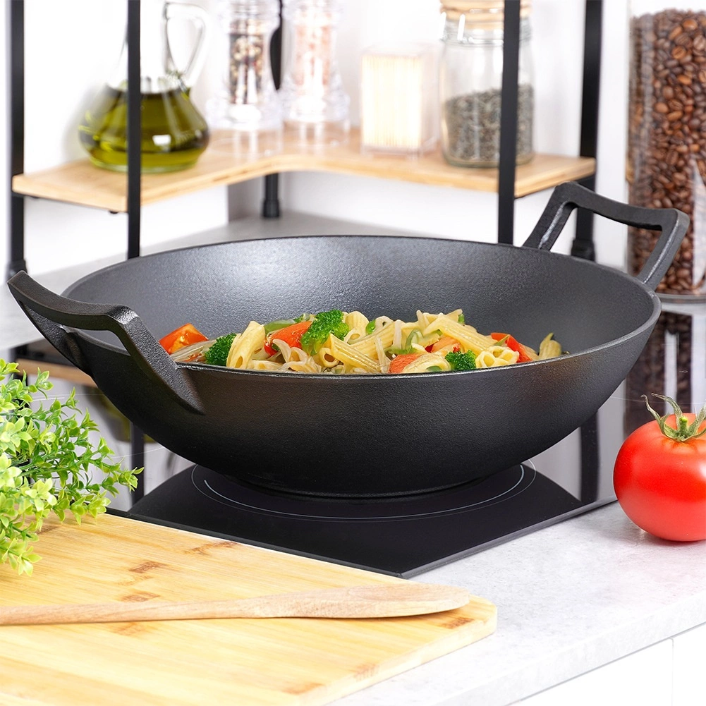 Litina je preverjen material za wok – ohranja visoko temperaturo, ki jo potrebujete za hitro praženje, cvrtje in zapekanje. Ta wok ponev s premerom 36 cm ponuja globoko, prostorno telo za velike porcije testenin, zelenjave, mesa in jedi, navdihnjenih z azijsko kuhinjo. Zaradi odpornosti na visoke temperature jo brez skrbi uporabite na štedilniku, na žaru in v pečici.