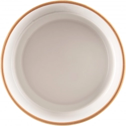 Elegantno belo ohišje s kontrastnim rjavim robom zlahka uskladite s katerim koli namiznim priborom. Posodica je odporna na toploto do 200 °C, lahko jo uporabljate v pečici, pogrevate v mikrovalovni pečici in brez skrbi perete v pomivalnem stroju.