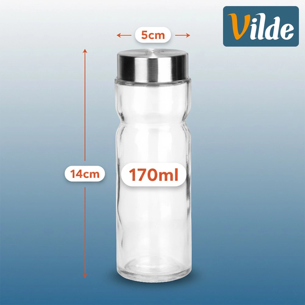 Odkrijte praktičen komplet dveh posodic VILDE – solnico in poprnico iz kakovostnega, debelega stekla s kovinskimi pokrovčki videza nerjavečega jekla. Zahvaljujoč prosojnemu ohišju vedno vidite količino začimb in jih lahko pravočasno dopolnite. Dozirne odprtine v pokrovčku pomagajo enakomerno posipati in preprečujejo presoljene oziroma preveč začinjene jedi.