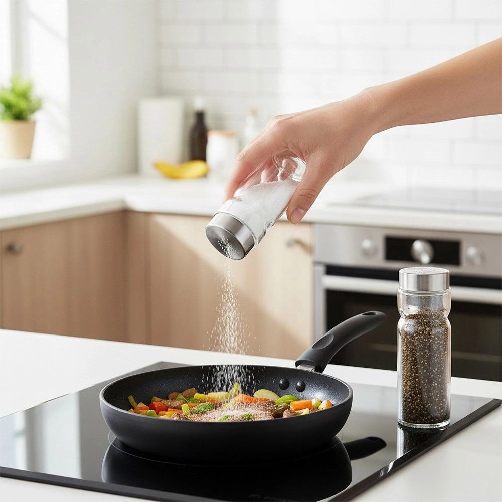Perforirani črki na pokrovčkih olajšata razlikovanje soli in popra – hitra orientacija pri kuhanju in serviranju.