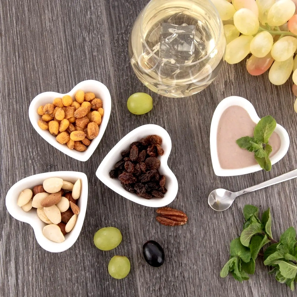 Vnesite kanček elegance na svojo mizo s temi porcelanastimi srčastimi posodicami. Odlične so za drobne prigrizke, suho sadje, oreščke, omake, dipe in majhne sladice. Zaradi kompaktnih mer in zložljive zasnove prihranijo prostor, hkrati pa delujejo dekorativno na vsaki mizi.