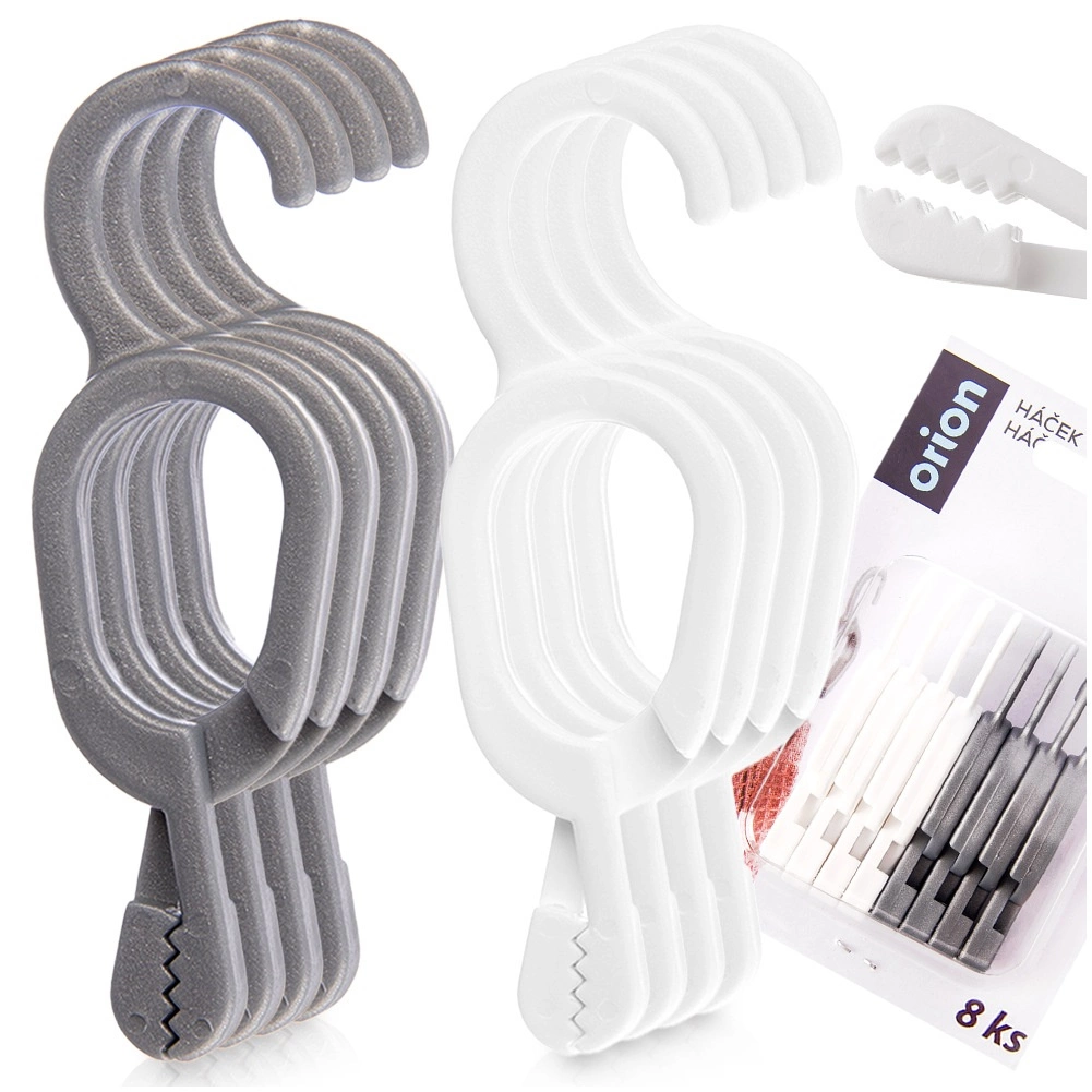 Praktičen set 8 sponk za brisače in kuhinjske krpe olajša obešanje tekstilij brez zanke. Vzdržljiva zasnova, hitro pripenjanje s sponko in kavelj za udobno obešanje v kuhinji, kopalnici ali pralnici. Dva nevtralna odtenka (siva in bela) se odlično podata sodobnim interierjem. Originalen izdelek češke znamke ORION.