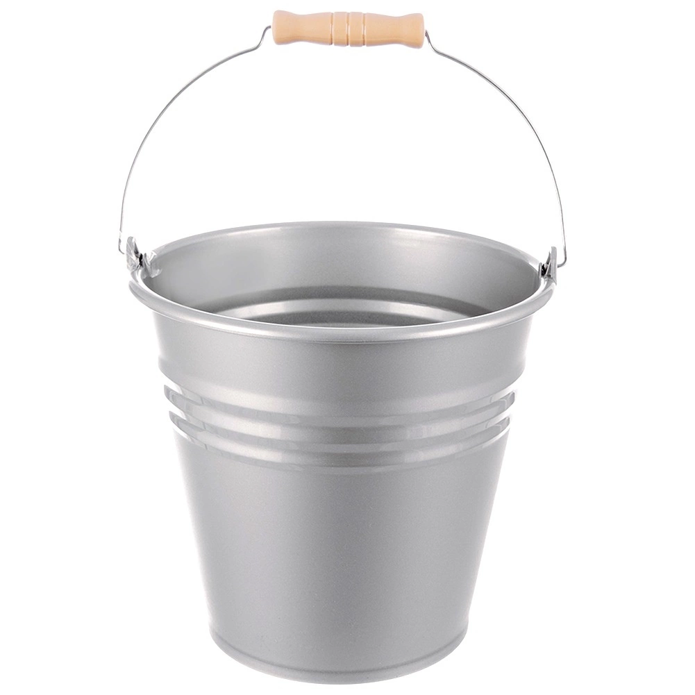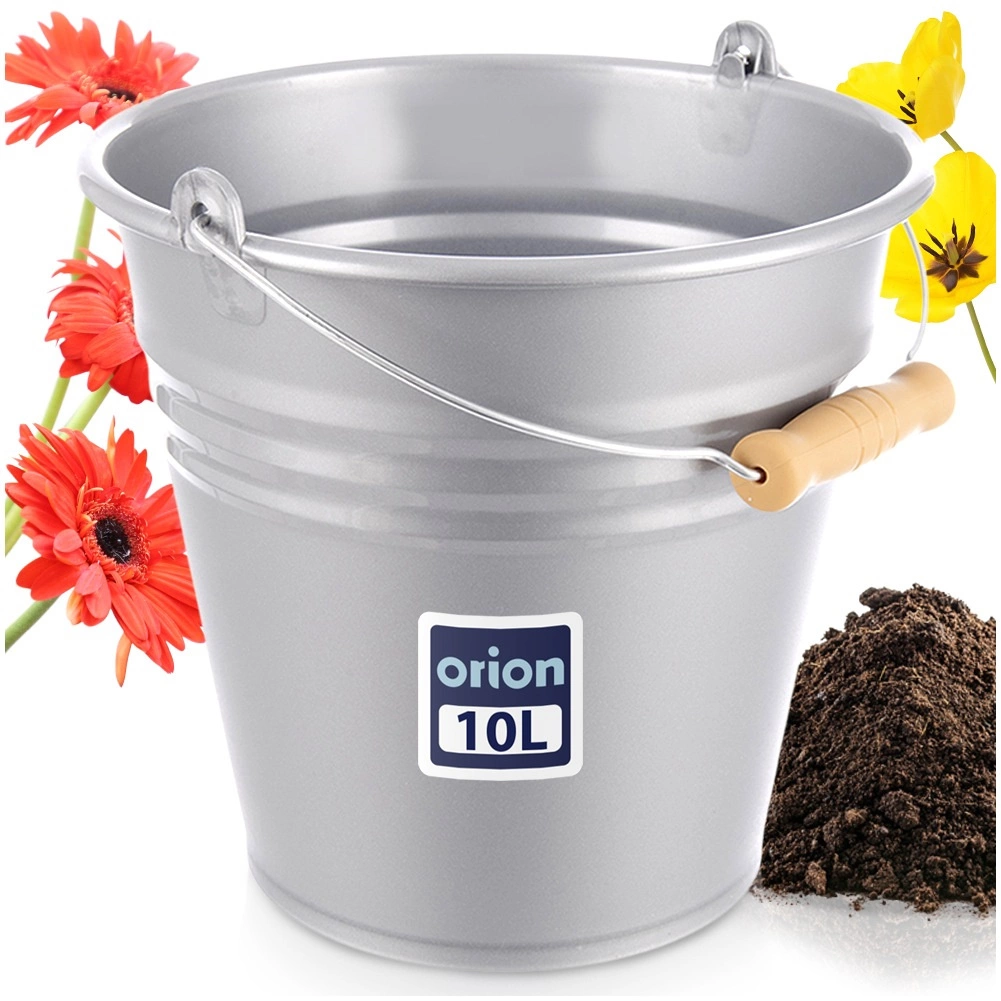 Praktično plastično vedro s prostornino 10 l v elegantni sivi barvi s stilizacijo v jeklen videz. Je lahko in odporno, z udobnim ergonomskim ročajem, ki posnema les, za enostavno prenašanje. Idealno za čiščenje, vrt in delavnico, z zunanjimi merami 29 × 29,5 × 28,5 cm.
