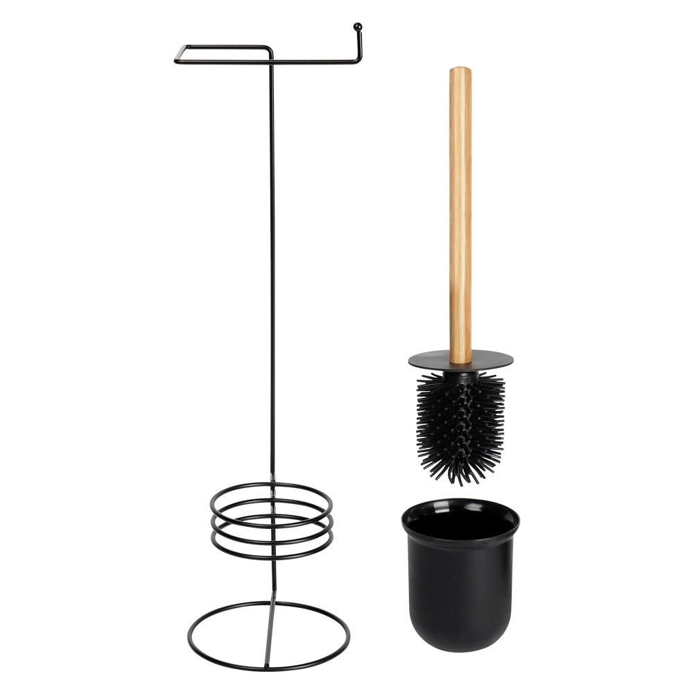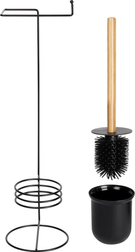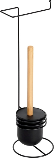 Ohranite kopalnico urejeno in stilsko s tem večnamenskim stojalom, ki nudi priročen dostop do role toaletnega papirja ter higiensko shranjevanje WC ščetke. Minimalistična črna zasnova z bambusovimi poudarki se odlično poda tako k modernim kot klasičnim interierjem in hkrati prihrani prostor.