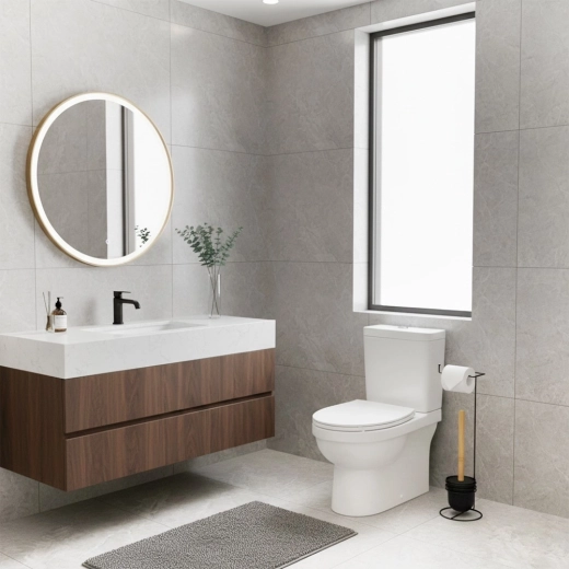 - 2‑v‑1: držalo za toaletni papir + WC ščetka v enem kompaktnem sklopu.