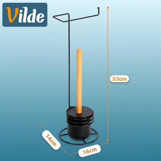 Dizajn in funkcionalnost: Preproste linije, kontrast črne in naravnega lesa ter skrbna izdelava ustvarjajo estetski dodatek, ki ohranja red v kopalnici in zagotavlja udobno vsakodnevno uporabo. Originalen izdelek blagovne znamke Vilde, izdelan v skladu z evropskimi standardi.