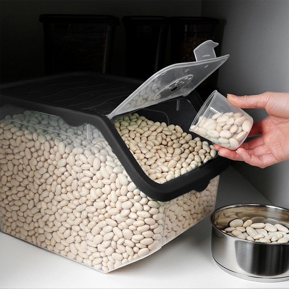 Praktičen in prostoren 12‑l posod za živila z prozornim ohišjem in pokrovom z nagibnim klik odpiranjem za preprosto doziranje. Primeren za sadje, zelenjavo, sipka živila ter krmo za živali. Ponuja nastavljivo prezračevanje za daljšo svežino, je brez BPA, primeren za zamrzovalnik in pomivalni stroj, priložena je merilna posodica.