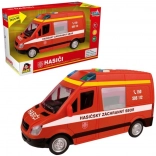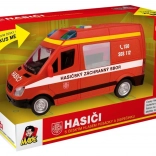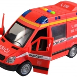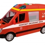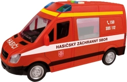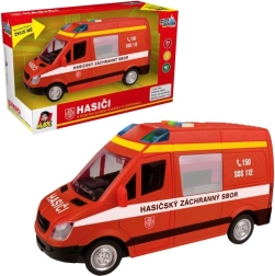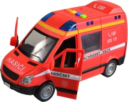 Ta gasilski kombi bo razveselil vse male reševalce z realističnim videzom in funkcijami. Po pritisku na gumbe boste slišali češki glas dispečerskega centra in posadke ter videli utripajočo svetilko. Zahvaljujoč pogona na vztrajnik vozilo preprosto potisnete in zapelje naprej.