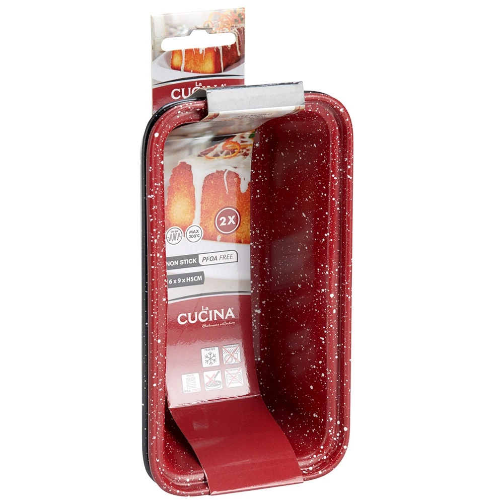 Odkrijte univerzalne pomočnike za vsako kuhinjo. Dva pravokotna pekača kompaktnih mer sta odlična za domači kruh, kolač, manjše bábke ter slane zapečene dobrote. Visokokakovostno jeklo zagotavlja hiter in enakomeren prenos toplote, zato bodo rezultati peke vedno zanesljivi.