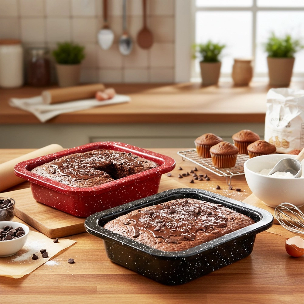 Set dveh kompaktnih pekačev se odlično poda v vsako kuhinjo – od hitrih sladic do izbranih slanih jedi. Zahvaljujoč granitnemu nelepljivemu sloju se testo ne prijema, pripravljene porcije pa zlahka odstranite brez poškodb. Ogljikovo jeklo odlično prevaja toploto, zato lahko vedno računate na enakomerne rezultate pri vsaki peki.