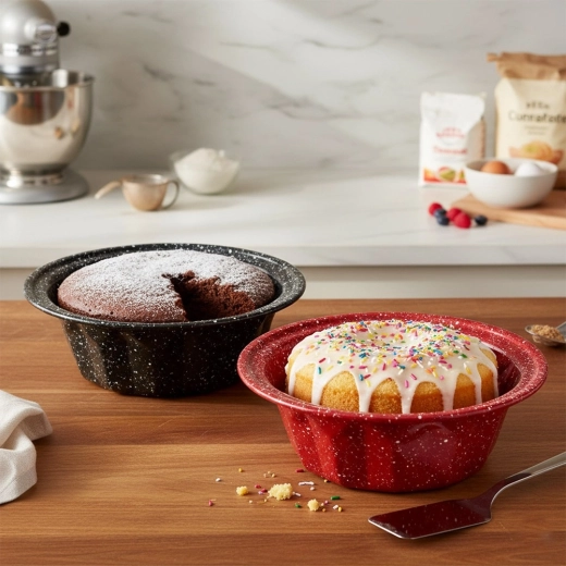 S tem kompletom dveh mini modelov za šarklje boste zlahka pripravili učinkovite sladice v individualnih porcijah. Kakovosten jekleni model z granitnim neprijemljivim premazom zagotavlja, da se testo ne prijema, končni šarklji pa se preprosto zvrnejo iz modela in ohranijo popolno obliko. Odlično za domače pečenje, stilno serviranje in ustvarjanje kreativnih sladic.
