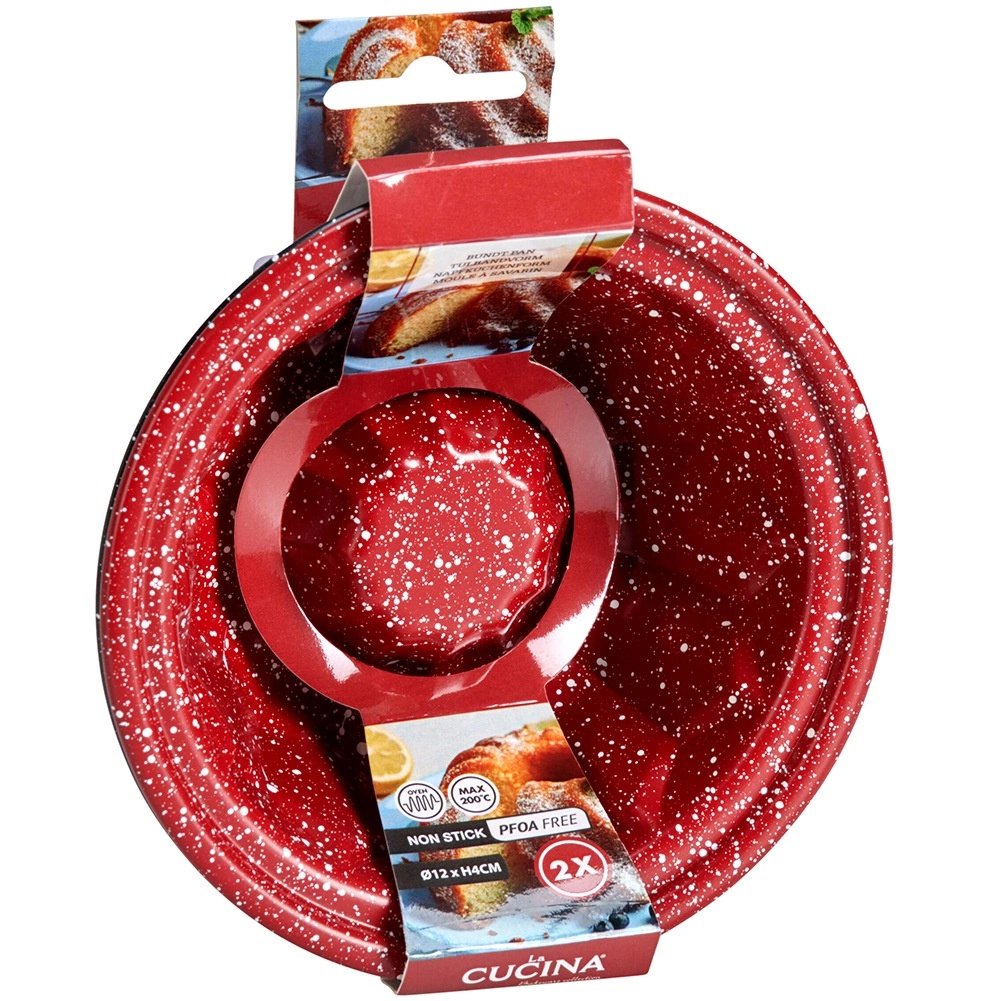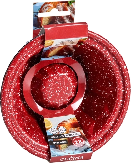 Praktičen komplet dveh majhnih modelov premera 12 cm z granitno neprijemljivo površinsko obdelavo za popolno oblikovane šarklje in sladice. Jeklo z odlično toplotno prevodnostjo zagotavlja enakomerno peko, sredinska cev za klasično obliko šarklja pa doda sladicam eleganten videz. Idealno za posamezne porcije šarkljev, mini cheesecakeov, želejev in zamrznjenih sladic, odporno do 200 °C in brez PFOA.