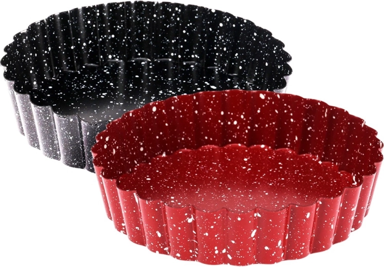 Odkrijte veselje do domačega peke z praktičnim kompletom 2 modelov za tarte, idealnih za sladke in slane recepte. Zahvaljujoč snemljivemu dnu končane tarte enostavno odstranite z brezhibno obliko, medtem ko nelepljiv granitni sloj preprečuje prijemanje in olajša čiščenje.