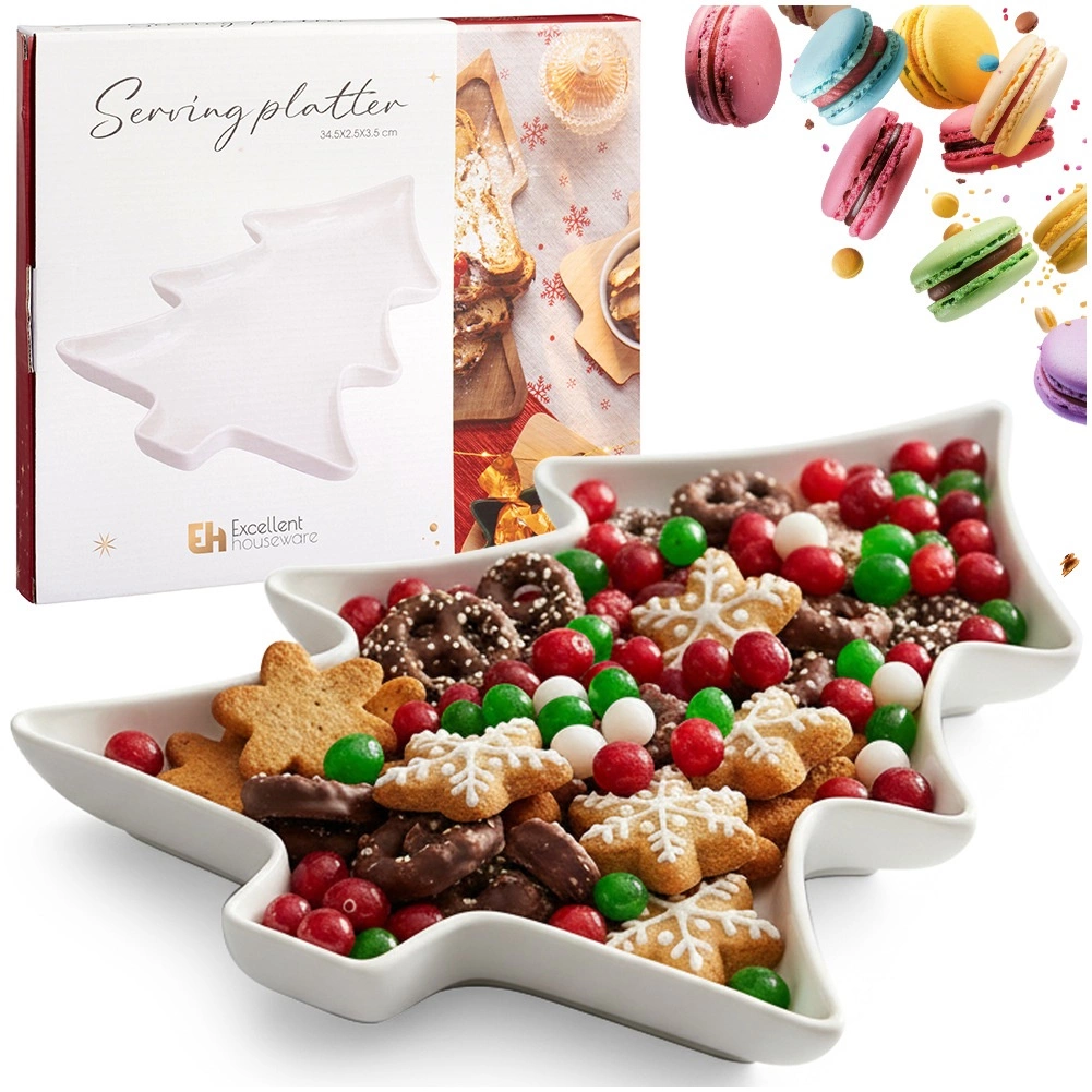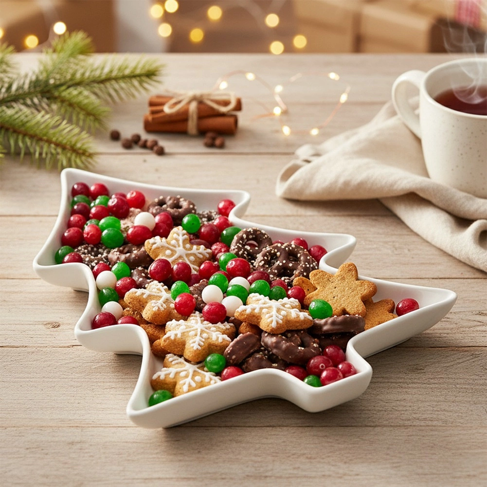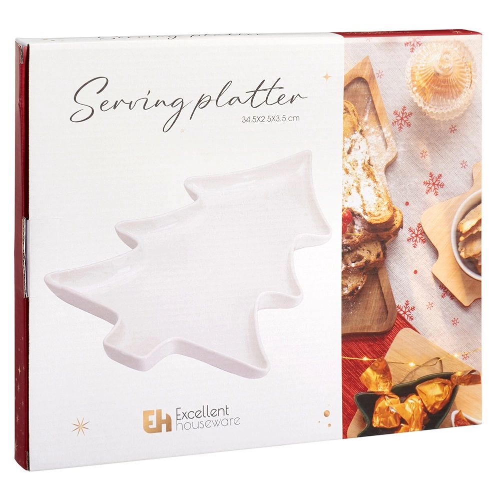 Porcelanast servirni krožnik v obliki božičnega drevesca 35 × 26 × 3 cm, bel