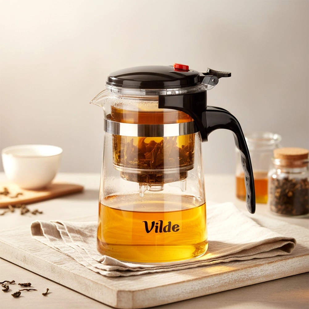 Odkrijte kompaktno rešitev za popoln čaj: stekleni čajnik z dvofaznim prelivnim namakanjem, ki maksimira okus in varčuje s čajnimi lističi. Lističi se namakajo v zgornji komori, kjer natančno nadzorujete intenzivnost esence. Z enim pritiskom gumba se napitek sprosti v spodnji vrč – brez prelivanja in brez nereda.