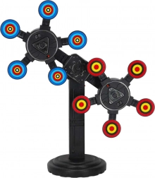 Vadite merjenje in hitre reakcije z elektronsko tarčo, ki se vrti in spreminja tempo. Zahvaljujoč digitalnemu štetju zadetkov dobite takojšnjo povratno informacijo, vsak igralec pa vidi svoj rezultat. Barvite tarče s tarčiščem pritegnejo pozornost in motivirajo k novim poskusom.