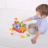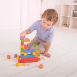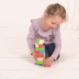 Lesena gradbena igra Bigjigs Baby ponuja edinstveno kombinacijo lesenih kock in plastičnih spojk, ki omogočajo trdne in stabilne konstrukcije. Kocke različnih oblik in barv so idealne za otroške ročice.